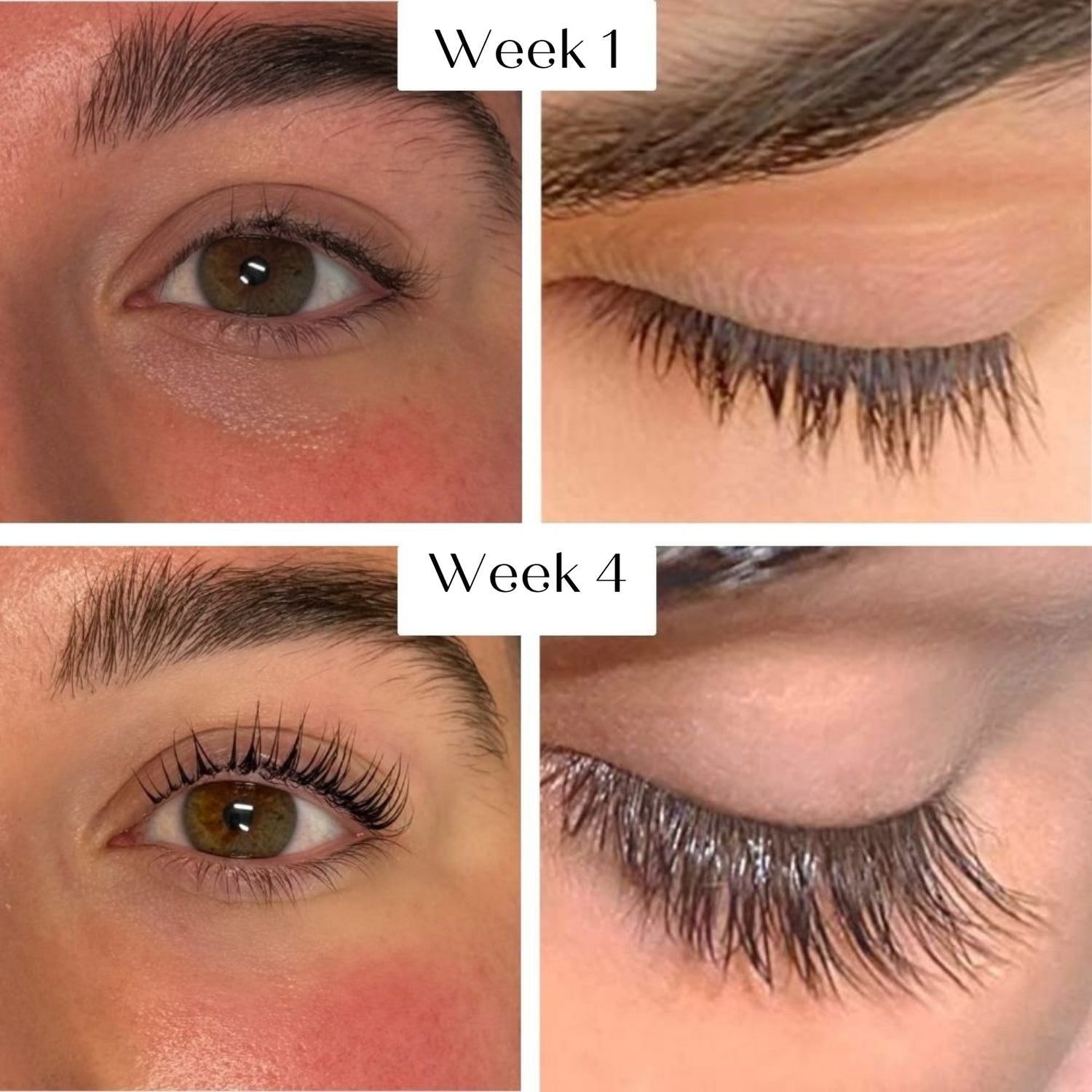 Week 3: The transformation is visible. Lashes appear longer, thicker, fuller: Naturally revived and beautifully multiplied.